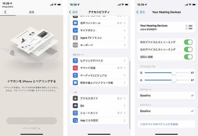 通常のBluetoothペアリングとは異なり、「アクセシビリティー」>「ヒアリングデバイス」から接続を行う必要がある