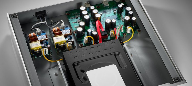 AD10の内部構造。ディスクドライブの取り付け方法においても、これまでのfidataブランドで培った音質対策が盛り込まれている