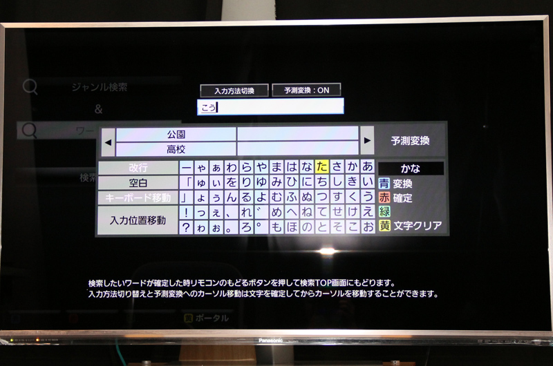 画面上のキーボードを使った入力画面。予測変換のON/OFFも可能