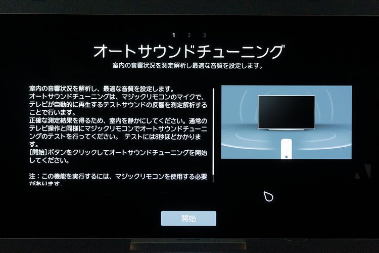 オートサウンドチューニングは、付属リモコンのマイクを使って調整するかたち。サウンドバーなどがなくても、リアルなサラウンド感を実現する