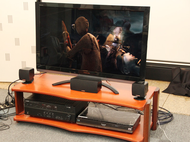 スピーカーパッケージ「NS-P285」と東芝の液晶テレビ“REGZA”「37Z3」を組み合わせて試聴