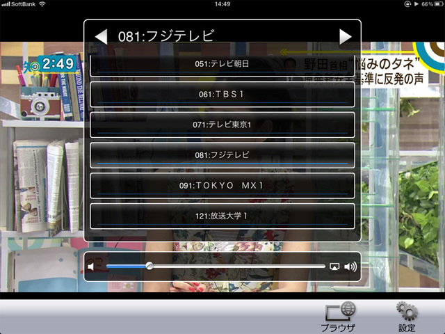 局名を選ぶか、左右矢印アイコンをタップしてチャンネルを切り換える