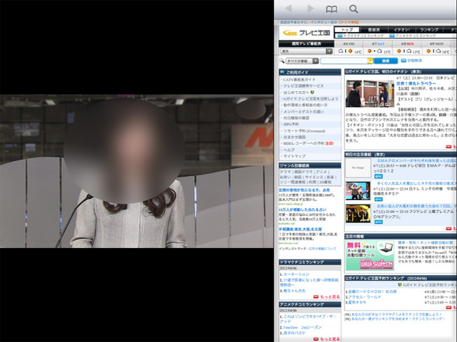 テレビとブラウザの2画面表示が可能