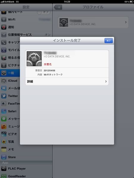 ネットワークプロファイルが作成され、インストールすれば無線LANの設定が完了する
