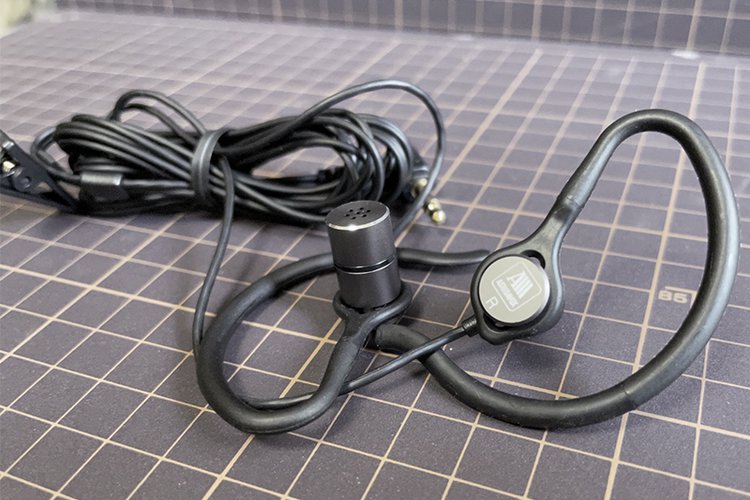 マイク部分が突出し重心位置が外に出ることへの対応だろう、イヤーフックで装着を安定させるスタイルを採用
