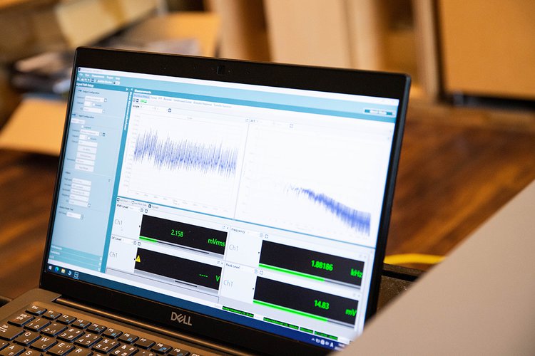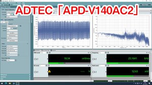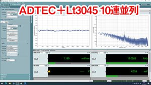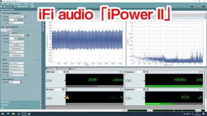 測定のソフトウェアはWindowsで。アナライザーの端子に抵抗と測定したい製品を繋ぐとすぐに結果が表示される。スペクトラムアナライザのほか、ノイズのRMS値なども表示される
