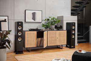 [Spec]●ユニット:25mmピナクル・リングラジエーター、165mmタービンコーン・ミッドレンジ、200mmアルミ/ポリプロピレンコーン・ウーファー×2●再生周波数範囲:30Hz~50kHz●周波数レスポンス(-3dB):38Hz~38kHz●推奨アンプ出力:20~300W●感度(2.83V/1m):88dB●インピーダンス:4Ω(4~8Ω出力のアンプに対応)●クロスオーバー:350Hz/2700Hz●サイズ:330W×1144H×429Dmm●質量:35.9kg(1台)●カラー:ブラック、ブラウン