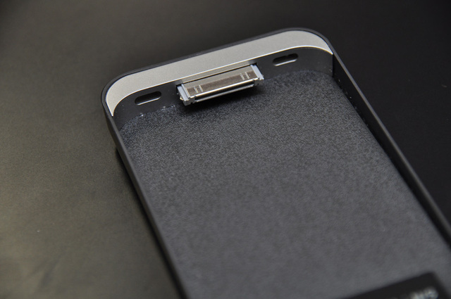 iPhone対応のドック端子を搭載。内蔵バッテリーからiPhoneへの給電も行える