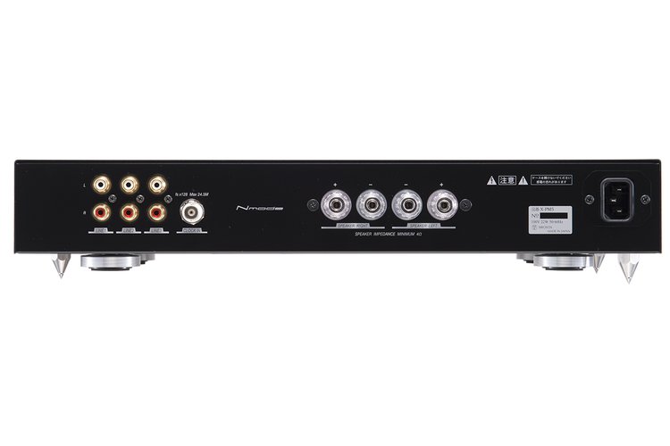 X-PM5の入力はRCA端子3系統。スピーカー出力端子は1系統。クロック入力端子を備えており、同社の「X-CL3MKII」などのクロックジェネレーターを接続することができる