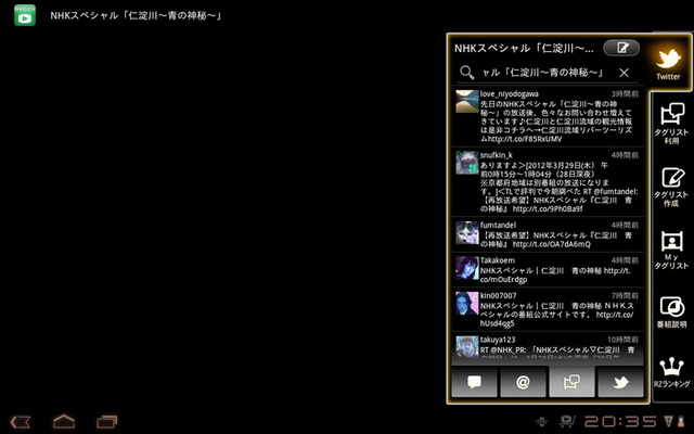 - 東芝、Androidタブレット対応アプリ「RZ番組ナビ」を公開 ー 番組情報検索や予約録画に対応 2012/11/10