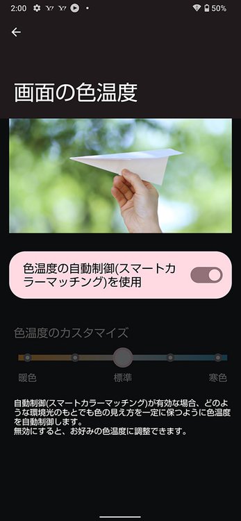 他にも、周辺環境光の明るさや光源の色合いに合わせてディスプレイの色再現が一定になるように自動制御する「スマートカラーマッチング(色温度の自動制御)」など、実用的な機能を搭載する