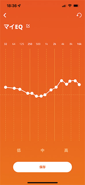 イコライジングした結果をオリジナルのプリセット設定として保存できる