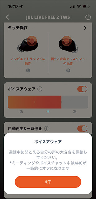 自分の声の大きさを調整するボイスアウェア機能も装備