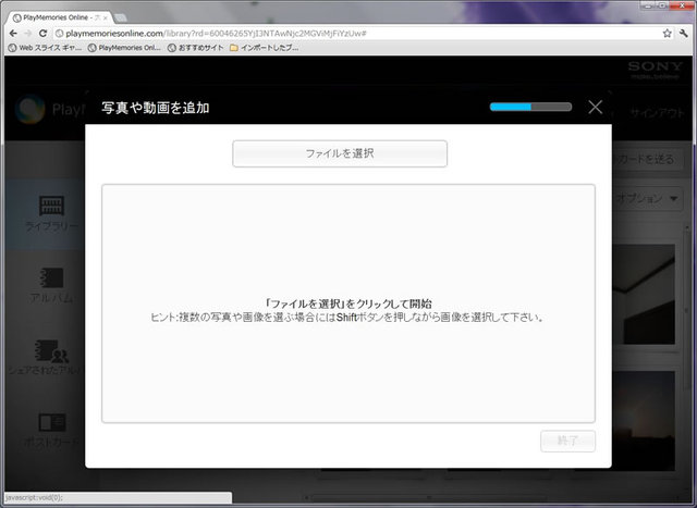 画像選択画面になる。「ファイルを選択」をクリックすると、画像選択に