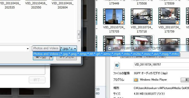 画像選択画面では拡張子「3GP」の動画が表示されない