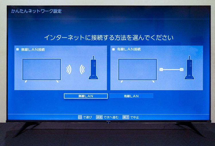 テレビの設定はわかりやすいアナウンスに従っていけば完了する。久しぶりにテレビを買い換えるようなときにも安心だ
