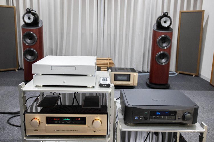 B&Wの「803 D4」をリファレンススピーカーとして音質をチェック! ネットワーク再生はエソテリックのN-05XDを、DAコンバーターとしてはアキュフェーズのDP-750のUSB入力を使用した