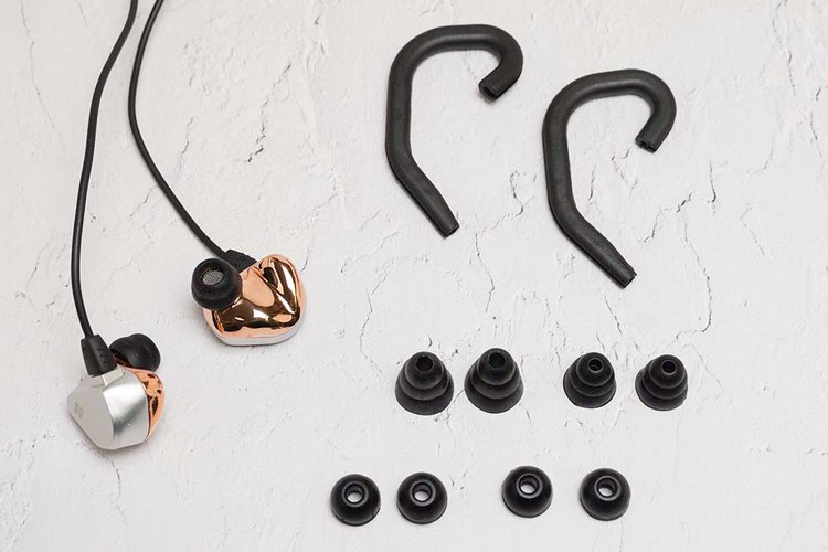 ダブルフランジ/トリプルフランジのイヤーピースとイヤーフックを同梱する