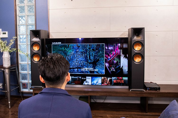 テレビの両脇にパッシブスピーカーを設置することで、ニュースやスポーツ中継、映像配信もぐっと臨場感溢れるものに!