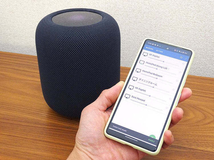 Android端末でも、アプリ「AirMusic」を使うとHomePodによるストリーミング再生ができる。ただ音質は若干不安定だ