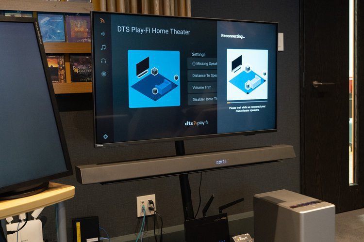 フィリップスのテレビとサウンドバー、ワイヤレススピーカーなど(いずれも日本未発売)を組み合わせてデモを体験した