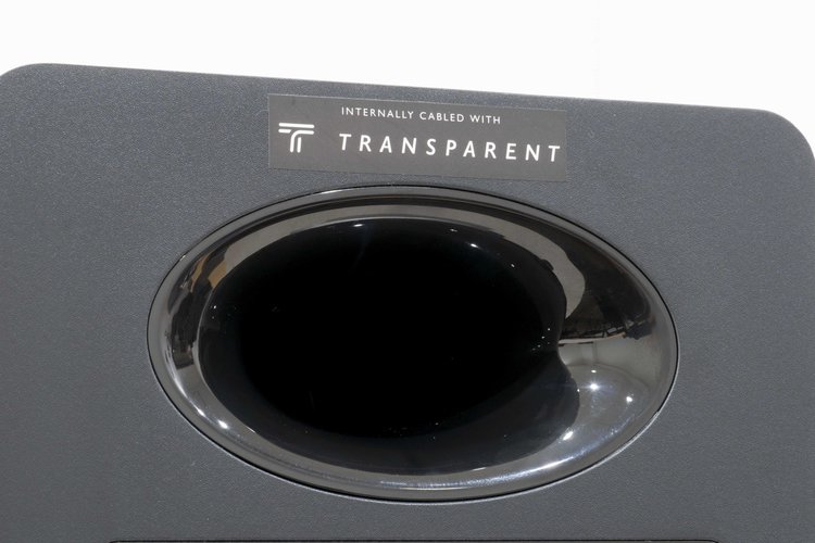 バスレフポートは背面上部に設置されている。内部配線材にはトランペアレントのケーブルが採用されている