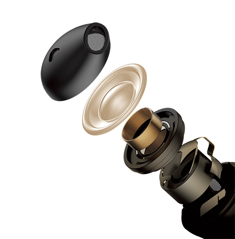【14.2mmドライバーにはバイオセルロース振動板】大口径14.2mmダイナミック型ドライバーの振動板には、軽量で剛性が高く、適度な内部損失をバランスよく備えた「バイオセルロース」を採用。これにより、繊細で解像度の高い中高域を再現。また、フリーエッジ構造により振幅の大きな中低域も忠実に再現するという。