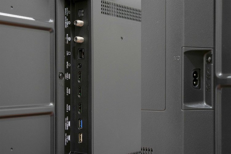 IRIS OYAMA「50XDA20」の背面端子部と電源部。ARC対応のHDMI入力を1基、電源ケーブルは着脱に対応する