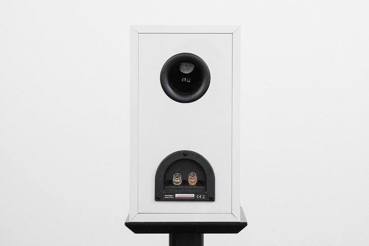 「MONITOR SE ATOM」の背面。バスレフポートは背面上部に位置する