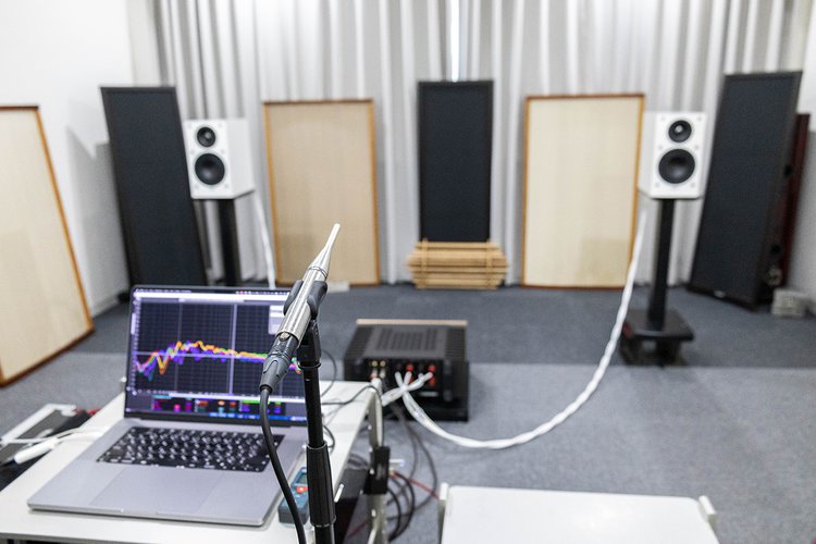 測定用マイクで試聴位置での音圧が等しくなるように調整して試聴