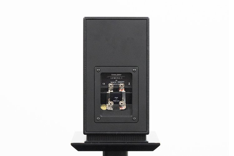 「LUMINA I」の背面端子。バイワイヤリング接続に対応、底部がバスレフポートとなっている