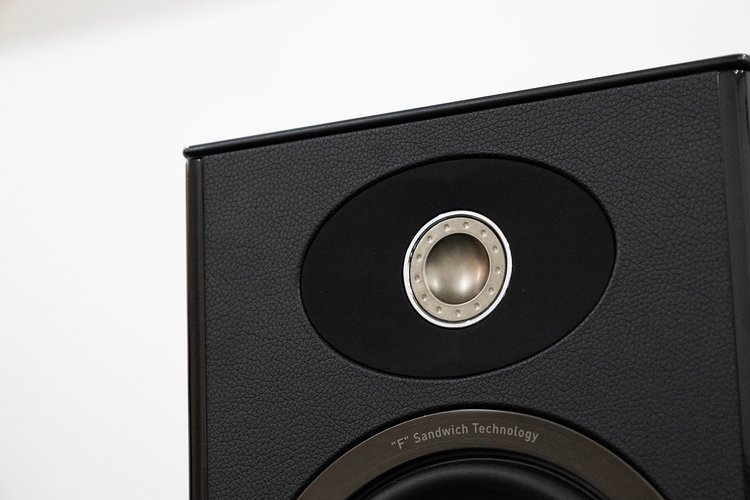 フォーカル独自のインバーテッド・ドーム(逆ドーム)トゥイーター。素材はアルミニウムとマグネシウム合金で構成。フロントの革張りもこだわり