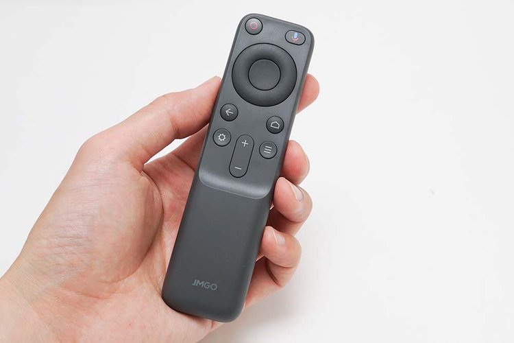 付属のリモコンはシンプルで、ボタン数が少ないため部屋の明かりを落とした状態でも操作しやすい