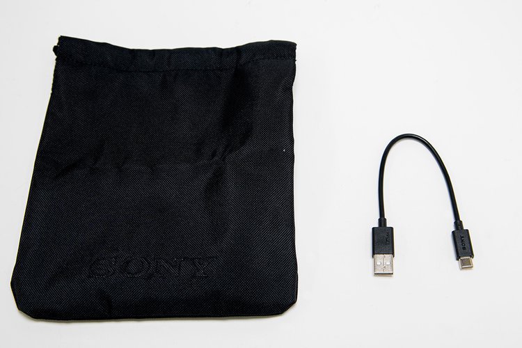本品の付属品。携帯時に便利なポーチと充電用のUSB Type-Cケーブルを同梱