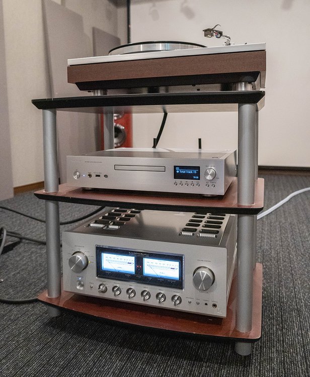 アナログプレーヤーにはラックスマンの「PD-171A」、CDプレーヤーにはテクニクスの「SL-G700M2」を組み合わせ。スピーカーはB&Wの「803 D4」