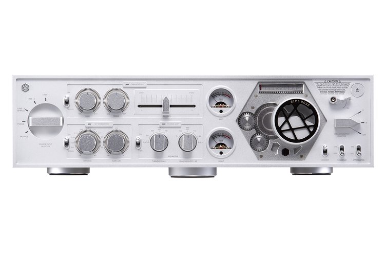 RA180のフロントパネルには、細かな調整をするためのスイッチが並ぶ。左側から入力切り替えのセレクター。左上はプリアンプ部分でトーンコントロールと左右のバランス調整用のスライドスイッチ。その下は、ハイパスフィルターとフォノアンプ部分でターンオーバーとロールオフの調整ができる。出力メーターを挟んで右側には特徴的なボリュームと電源スイッチディマーやサブソニックフィルターが備わる