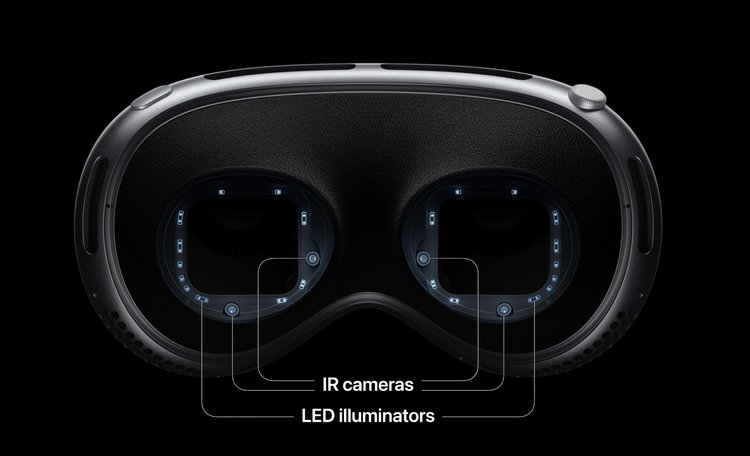 本体内側のLEDと赤外線カメラによりユーザーの目の動きをトラッキング、ポインタを操作する
