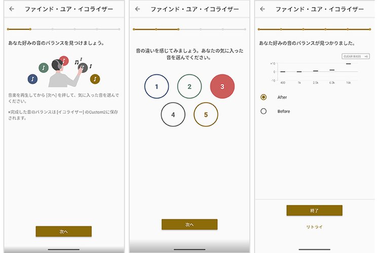 テストトーンを聴きながら好みのものを選んでいくと音質が個人最適化される