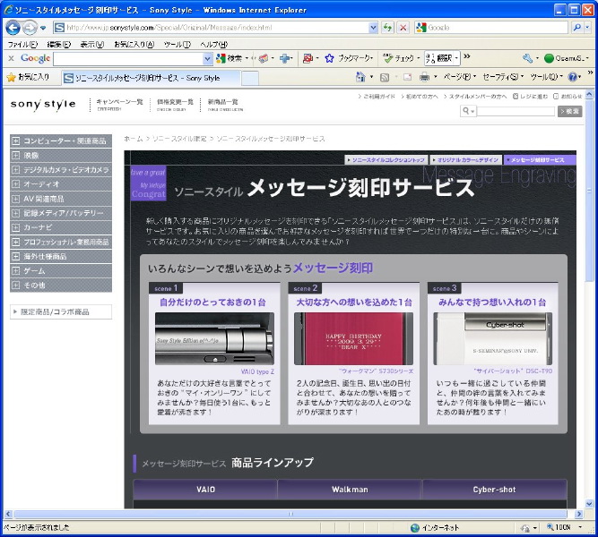 自分だけのVAIOにできるメッセージ刻印サービスも用意している