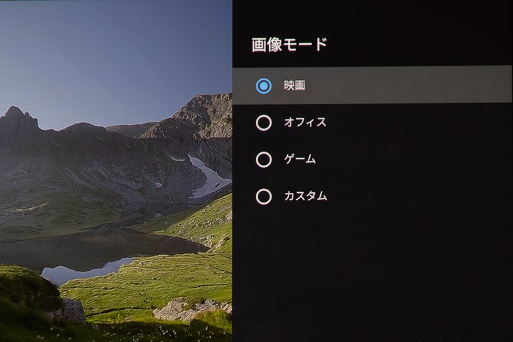映像モードは、「映画/オフィス/ゲーム/カスタム」の4つのモードを設けている