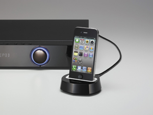 iPod/iPhone対応のクレードルを付属。iPod/iPhoneに保存した音楽、写真、動画が再生できる