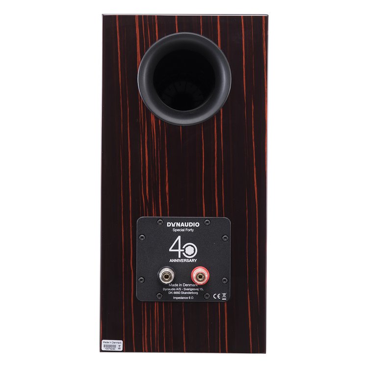 上部にバスレフポートを置き、入力端子はシングルワイヤリング専用と、ディナウディオのオーソドックスなスタイルを踏襲する。写真はBlack Vine