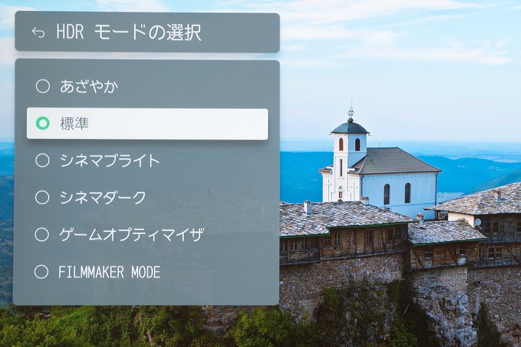 映像モードは、映像コンテンツがHDRかSDRによっても選べるモードが異なる。写真左がHDRの映像モード、写真右がSDRの映像モード