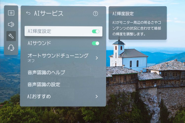 「AIサービス」の項目で、「AI輝度設定」や「AIサウンド」のオン/オフが可能
