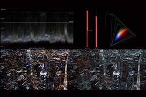 新しい項目の「HDR Analyzer」では、左下に「元のカラー映像」、左上に「輝度グラフ」、右上に「色域グラフ」、右下に「白黒映像」を映す4分割画面になっている