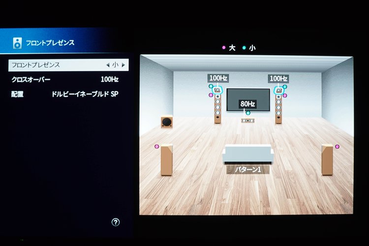 RX-A4Aの自動音場補正/スピーカー設定の画面。。5.1.2chシステムに対応し、トップスピーカーはオーバーヘッドの配置が可能