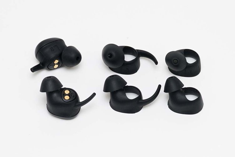 イヤーチップ/イヤーフィンは一体型になっており、3サイズが用意される
