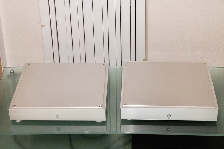 第一世代fidata「AS1」(左)と第二世代「AS2」(右)。正面からはほぼ区別がつかないが、AS2のほうがわずかに背が高い他、天面の仕上げも変更されている