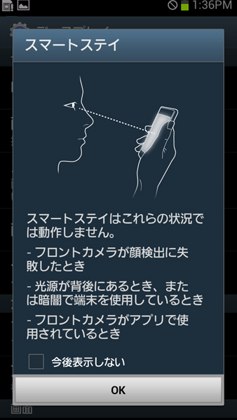 設定のみなので画面はないが、顔認識していないと目のアイコンが出て画面が暗くなる