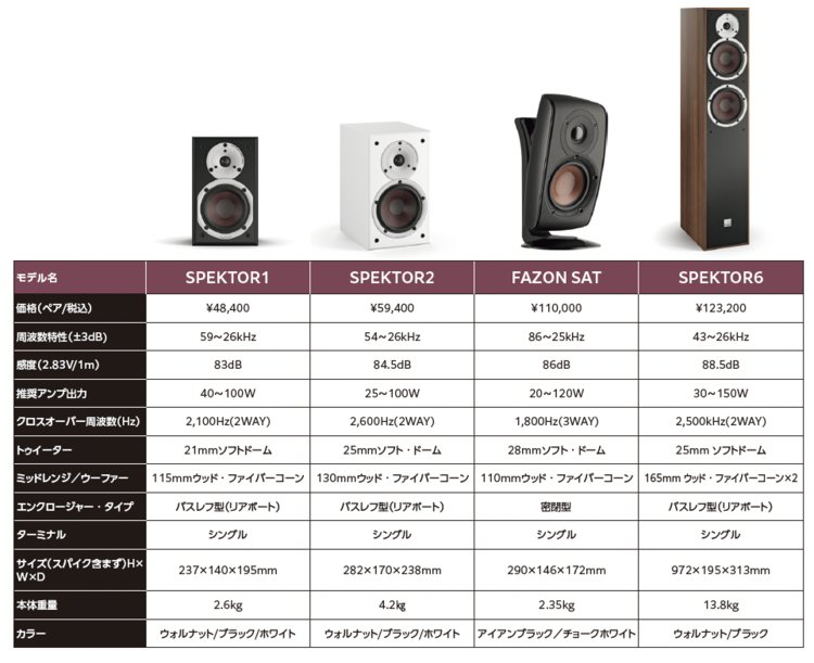 今回試聴した4モデルのスタンダードクラスのスピーカー